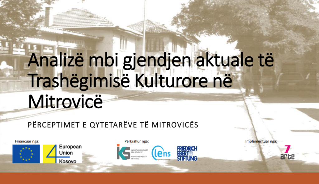 7Arte publikon raportin “Analizë mbi gjendjen aktuale të Trashëgimisë Kulturore në Mitrovicë”, i cili pasqyron perceptimet e qytetarëve dhe thekson nevojën urgjente për mbrojtjen dhe promovimin e trashëgimisë kulturore. Raporti rekomandon hartimin e Planit Komunal për Trashëgimi Kulturore dhe përfshin edhe Hartën Digjitale të trashëgimisë së qytetit. Projekti është realizuar me mbështetjen e Bashkimit Evropian.